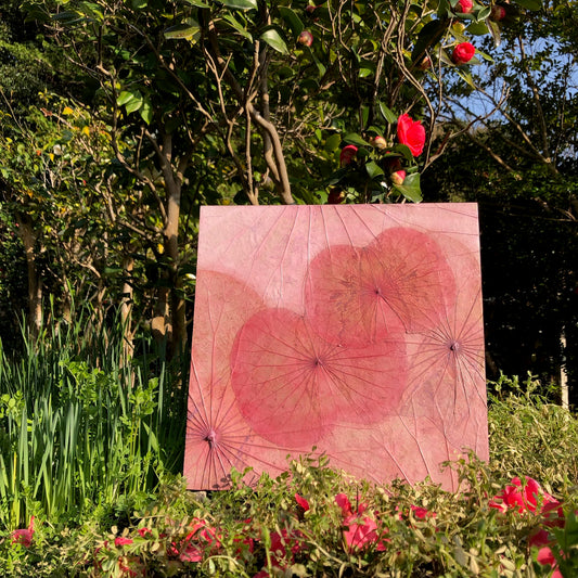ロータスリーフペインティングは、蓮の葉を貼り付けてあるロータスリーフキャンバスに、自由に色を重ねて絵画を制作するアートです。